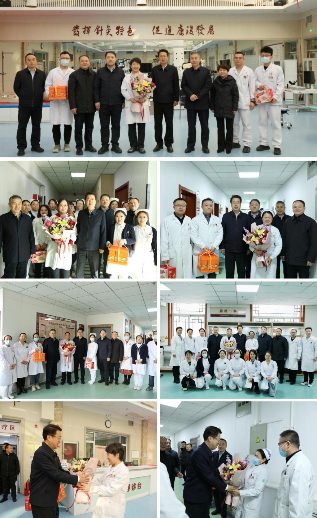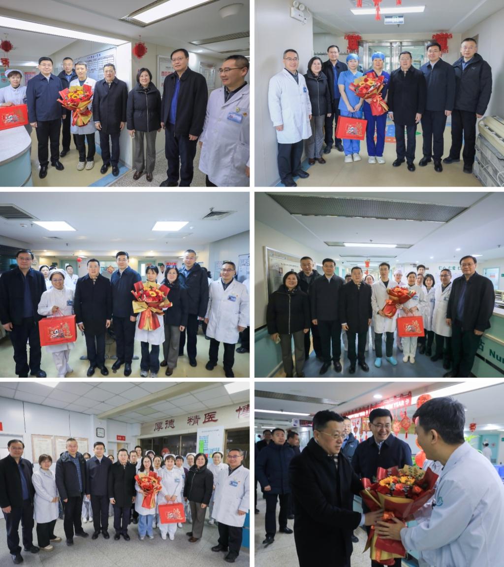 2月12日至13日,校领导李华荣、王宏伟、苑静、乔军红、郭蕾、贺文彬深入附属医院(第一临床学院)、附属针灸推拿医院(第二临床学院)、附属中西医结合医院(第三临床学院)、附属晋中医院(第四临床学院),看望慰问一线医务人员并送上新春祝福。