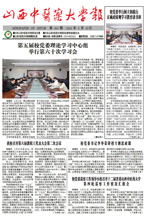 2026-03 山西中医药大学传达学习全国两会精神暨党委理论学...3月18日,山西中医药大学传达学习全国两会精神暨党委理论学习中心组(扩大)专题学习会召开。校党委书记李华荣主持会议。第十四届全国人大代表、山西晚报社副总编张临山以《发展全过程人民民主、以新质生产力推动中国高质量发展》为题...