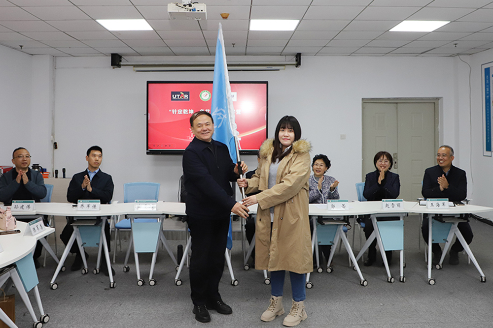 在热烈的掌声中,郝重耀向研学营代表授旗。