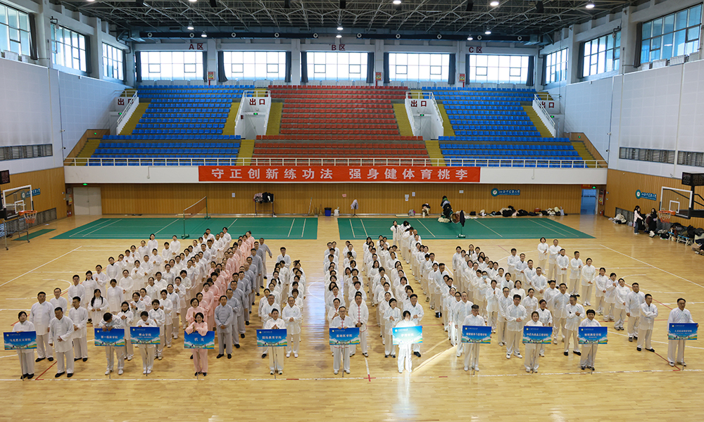 为深入贯彻《健康中国2030规划纲要》及全民健身计划要求,弘扬中华传统健身养生文化,12月1日下午,校工会与体育教学部联合主办的教职工八段锦健身气功比赛在杏林体育馆举行。校领导李华荣、王宏伟、苑静、乔军红、郭蕾、张桓虎、贺文彬出席活动。党委书记李华荣宣布比赛开始。全校10支分工会代表队、300余名教职工同台竞技,以规范舒展的招式演绎传统功法魅力,尽显育人者奋进风采。