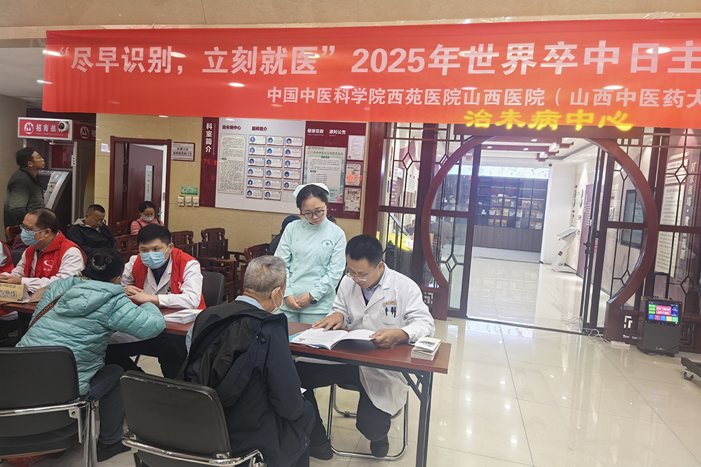 在三个临床分场,团队驻各大医院的临床教师也将“世界卒中日”的警示与希望带到了诊疗一线,实现了从实验室到病床边的无缝衔接,达到了践行使命,将“时间就是大脑”的理念送达公众。在山西中医药大学第一附属医院门诊大厅,郝如彬博士的义诊台前人头攒动。他不仅为前来咨询的市民提供免费的血压测量和初步的卒中风险评估,更结合其丰富的临床经验与中医辨证思维,为每位咨询者提供个性化的健康指导。从情志调节、饮食宜忌等方面给予了细致的中医预防调理方案,充分体现了“既病防变,瘥后防复”的中医治未病思想。在山西白求恩医院,丁智斌副主任医师将科普阵地设在病房中,通过生动的现场讲解,向患者及家属反复强调“FAST”识别法(面部下垂、手臂无力、言语困难、尽快拨打急救电话)。他结合临床典型案例,告诫大家:“对于脑卒中,任何的犹豫和拖延都可能以珍贵的脑细胞为代价。识别征兆后的每一分钟都至关重要。”在山西省人民医院,温春丽副主任医师与神经内科的同事开展了联合义诊。她重点关注中老年人群的“三高”(高血压、高血糖、高血脂)管理问题,就如何规范监测血压血糖、如何正确服用他汀类药物等患者日常遇到的困惑进行了耐心的解答。她强调:“管理好高血压、糖尿病等基础疾病,就是最为有效的卒中一级预防。患者的自我管理能力与遵医行为,直接决定了远期预后。”