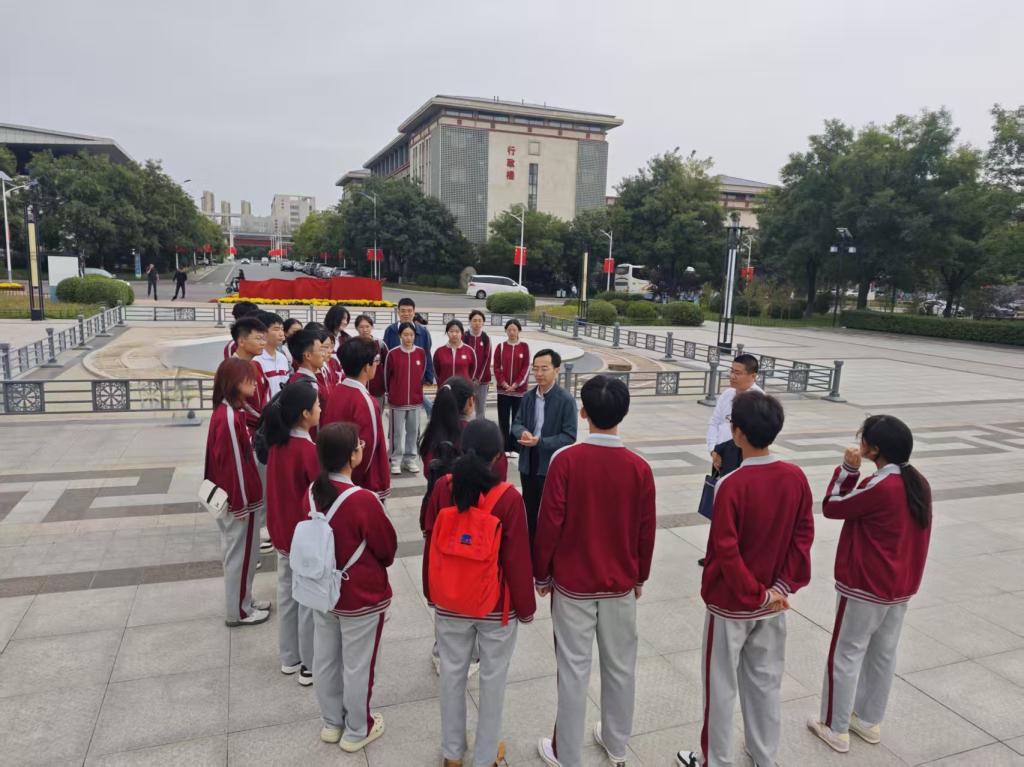 王建青一行来到大医精诚广场前,亲切与2025级新生交流。他细心询问同学们入校后的适应情况,就新生关心的课程学习、社团参与、时间规划等问题一一解答。