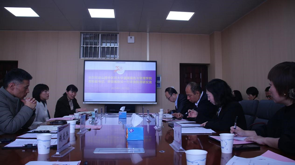 贾晓斌指出,南京中医药大学是高等中医药教育的摇篮,卫生经济管理学院学科实力雄厚,在党建与业务融合、本硕博人才培养及科研项目攻关等方面均取得了令人瞩目的成就,积累了丰富的经验,是我们学习的标杆和榜样。宋丽娟强调此次来访一方面大家怀着虚心求教、真诚交流的态度旨在向该院学习先进的管理制度和优秀的教学研产宝贵经验;另一方面衷心希望能以此为契机,再续双院12年前的友谊佳话,搭建常态化交流平台,在专业课程共建、师资队伍互访、产学研项目联合攻关等方面探索更多合作路径,共同助推苏晋两省两校中医药健康服务与管理领域的高质量发展,为中医药事业传承创新贡献力量。