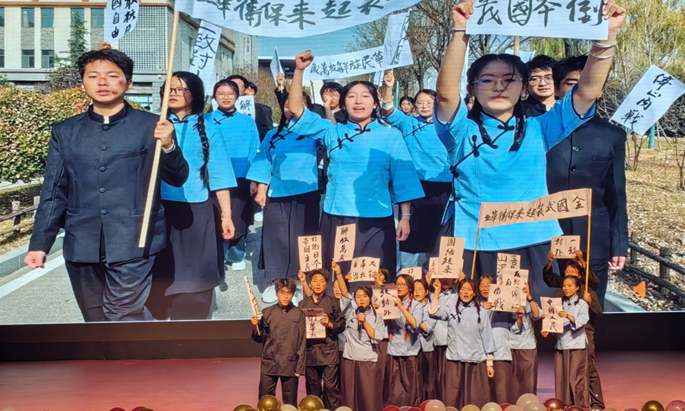 晚会现场,学生们以生动的演绎,再现先辈们的爱国壮举,带领观众穿越时空,重回那段热血激昂的岁月。