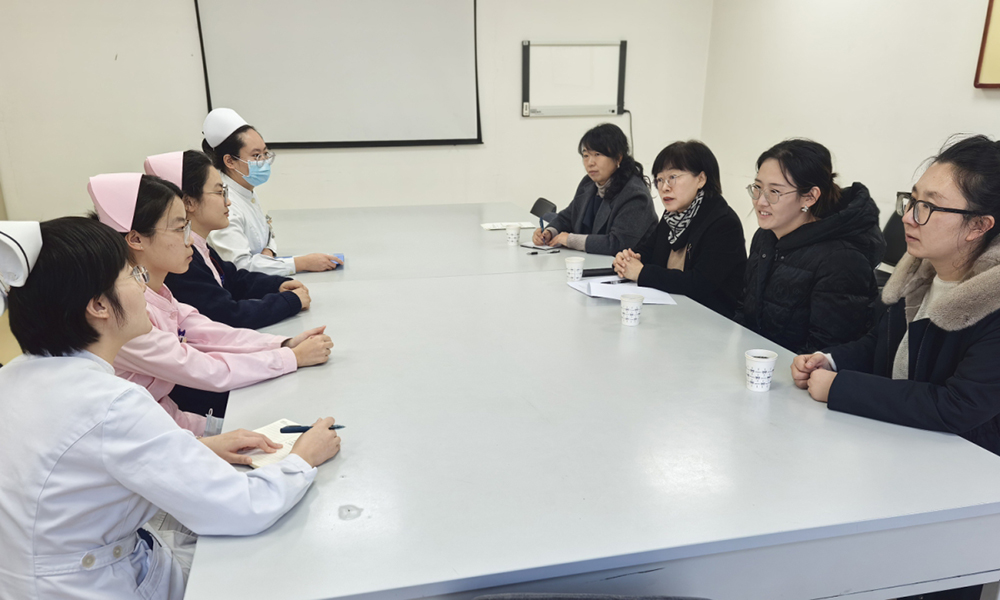 随后,双方围绕护理专业学生实践教学相关的一系列问题展开了深入交流。商临萍就当前临床带教中存在的共性问题提出了建设性意见,并强调应进一步加强院校协同,优化实习考核机制。柴智对医院长期支持学院实践教学工作表示感谢,并就进一步完善轮转安排、加强实习生心理支持、深化临床教学内涵建设等方面与医院进行了探讨,就实习过程中学生反馈的实训资源分配问题与院方进行了沟通。检查组还实地查看了实习生轮岗排班与带教记录,深入了解了实习生在临床实践中的成长轨迹与现实困境。