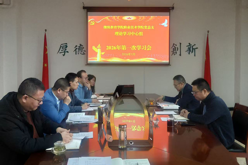 1月14日,继续教育学院(职业技术学院)党总支召开理论学习中心组2026年第一次学习会。学院党总支书记吕洪主持会议,学院中心组成员参加。
