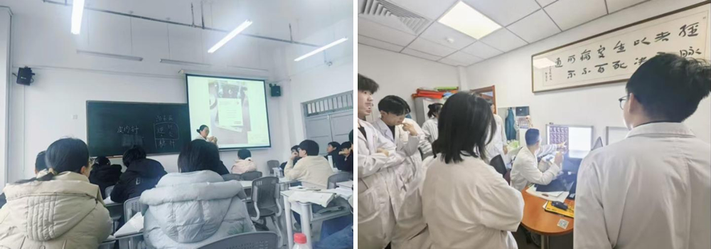 课堂之上,“皮内针”“逆针”“燔针”等特色疗法的讲解引人入胜,黑板上的详实板书与投影中的典型病例相互印证,同学们凝神聆听、踊跃提问,在思维的碰撞中打通了理论与实践的壁垒,让流传千年的针灸技法在当代课堂中焕发勃勃生机。